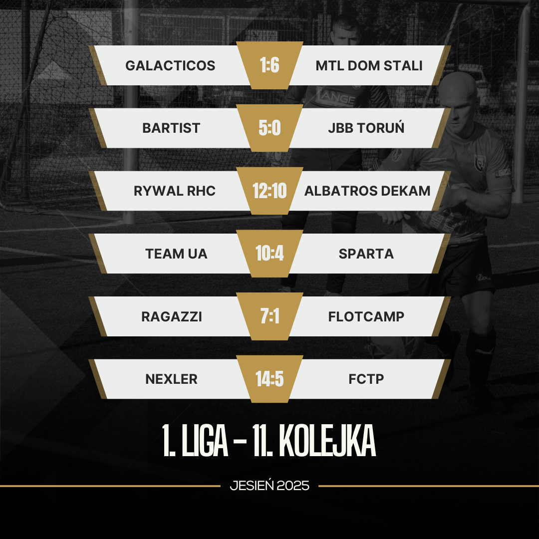Jako pierwsze na boisko wyszły drużyny Galacticos Lizard King Toruń oraz MTL Stale Nierdzewne – SL Studio. Mecz miał wielką wagę, a jak się później okazało, trzy punkty w tym spotkaniu zapewniały spokojne utrzymanie i grę w grupie centralnej. Stale w tym meczu zdominowały swojego rywala strzelając sześć goli i tracąc tylko jednego. Do zwycięstwa poprowadził swoją drużynę Paweł Lipiński, autor 2 bramek i 1 asysty. Zawodnik ten został uznany najlepszym zawodnikiem meczu i trafił do szóstki kolejki razem z bramkarzem swojej ekipy, Pawłem Rapciewiczem, który puścił tylko jedną bramkę i zanotował kilka dobrych interwencji.  Przegrany godzinę później zaległy mecz z Rywalem nie pokrzyżował Stalom planów w kontekście spokojnego utrzymania – drużyna ta zagra w grupie centralnej. Galacticos pozostaje walka o to, aby na wiosnę dalej grać w najwyższej klasie rozgrywkowej.