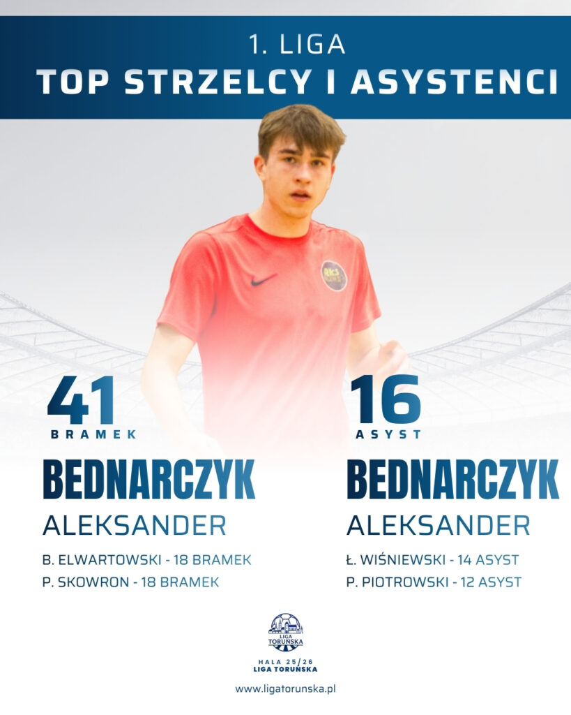 Niesamowitą historię napisała drużyna RKS Huwdu, która do elity dołączyła w ostatniej chwili za namową organizatorów, by uzupełnić ligową stawkę. Mimo że początek był niezwykle trudny i przyniósł dwie porażki na starcie, zespół ten udowodnił, że wiara w sukces potrafi zdziałać cuda. Od tamtego momentu mistrzowie nie zaznali już goryczy porażki, notując fenomenalną serię dwunastu meczów bez przegranej, którą zwieńczyli pewnym zwycięstwem nad R1 Squad w starciu o złoto. Ten sukces nie byłby jednak możliwy bez indywidualnego geniuszu Aleksandra Bednarczyka, który w tym sezonie zagarnął dosłownie wszystko, co było do zdobycia. Olek nie tylko poprowadził zespół do tytułu, ale sięgnął po podwójną koronę króla strzelców i asystentów, mając bezpośredni udział przy 57 z 97 bramek swojej drużyny, co czyni go postacią absolutnie kluczową dla losów całej ligi.
