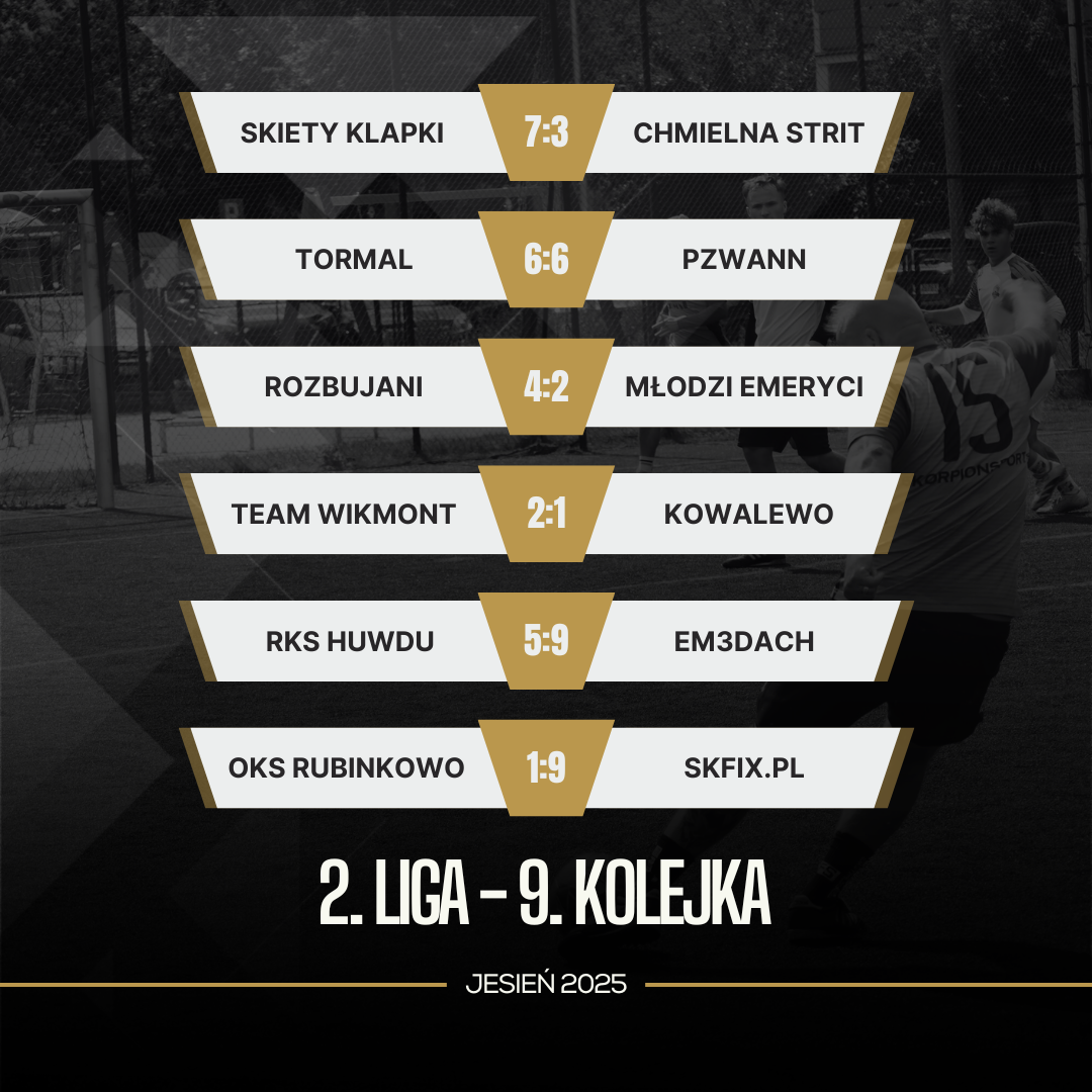 Totalny rollercoaster wydarzeń zafundowali nam zawodnicy 2. Ligi Toruńskiej w 9. kolejce rozgrywek. Witamy nowego lidera, który ma dodatkowo zaległe spotkanie do rozegrania, Huwdu zalicza spadek aż o 3 lokaty, a Tormal dalej wygląda, jakby plan na utrzymanie stawał się realny.