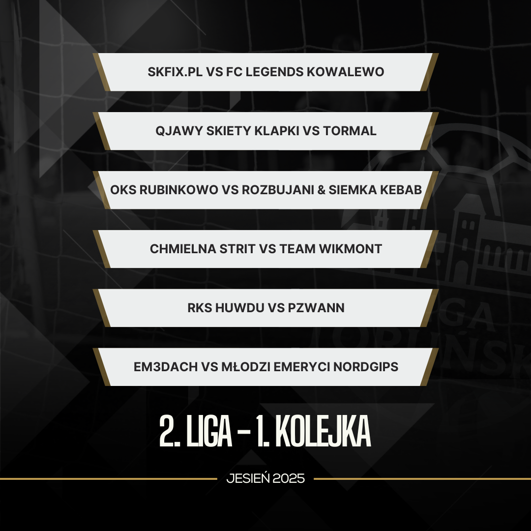 Rozgrywki drugiego poziomu ligi toruńskiej zaczynamy od spotkania SKFIX.PL z FC Legends Kowalewo Pomorskie! SKFIX to nowo powstała drużyna, która wyrosła z zespołu Clar System. Ekipa Szymona Kowalskiego od razu dostała nie lada wyzwanie – „Legendy” z Kowalewa Pomorskiego to już stały bywalec toruńskich orlików.