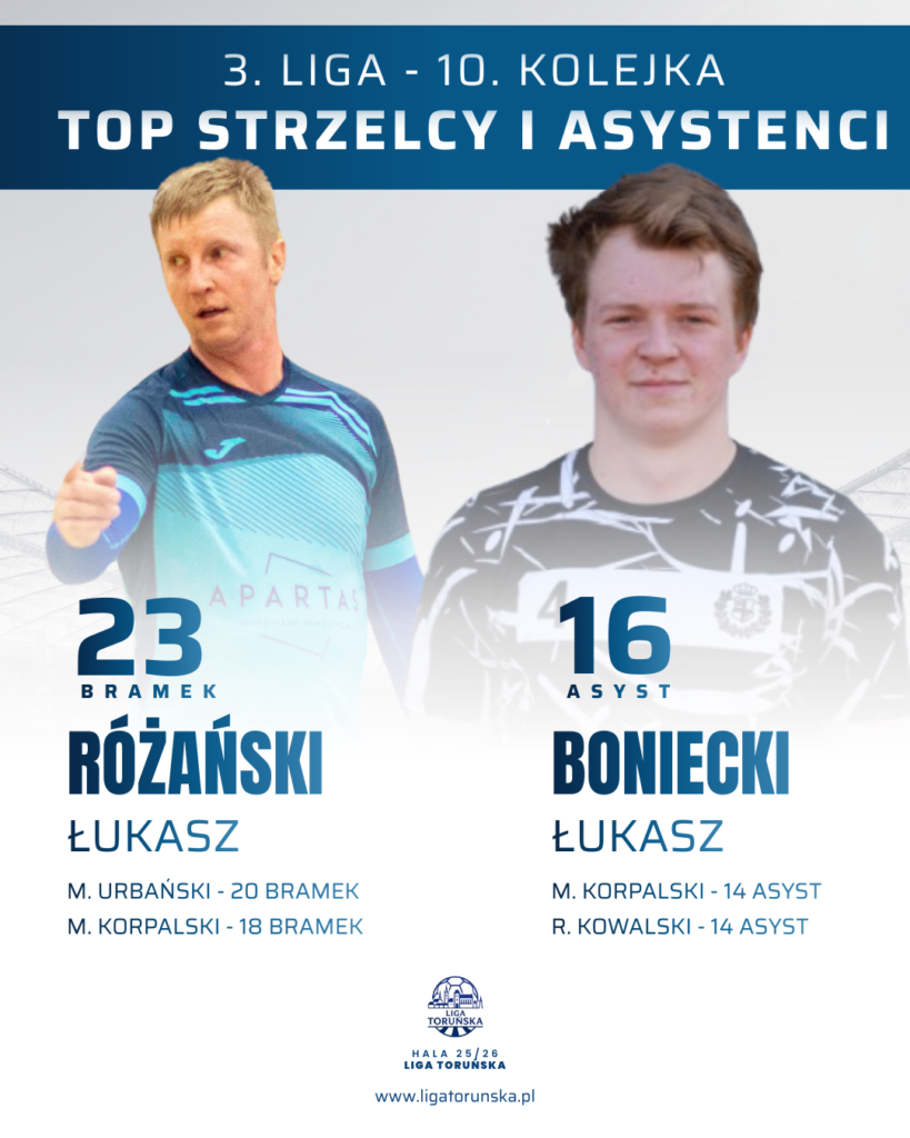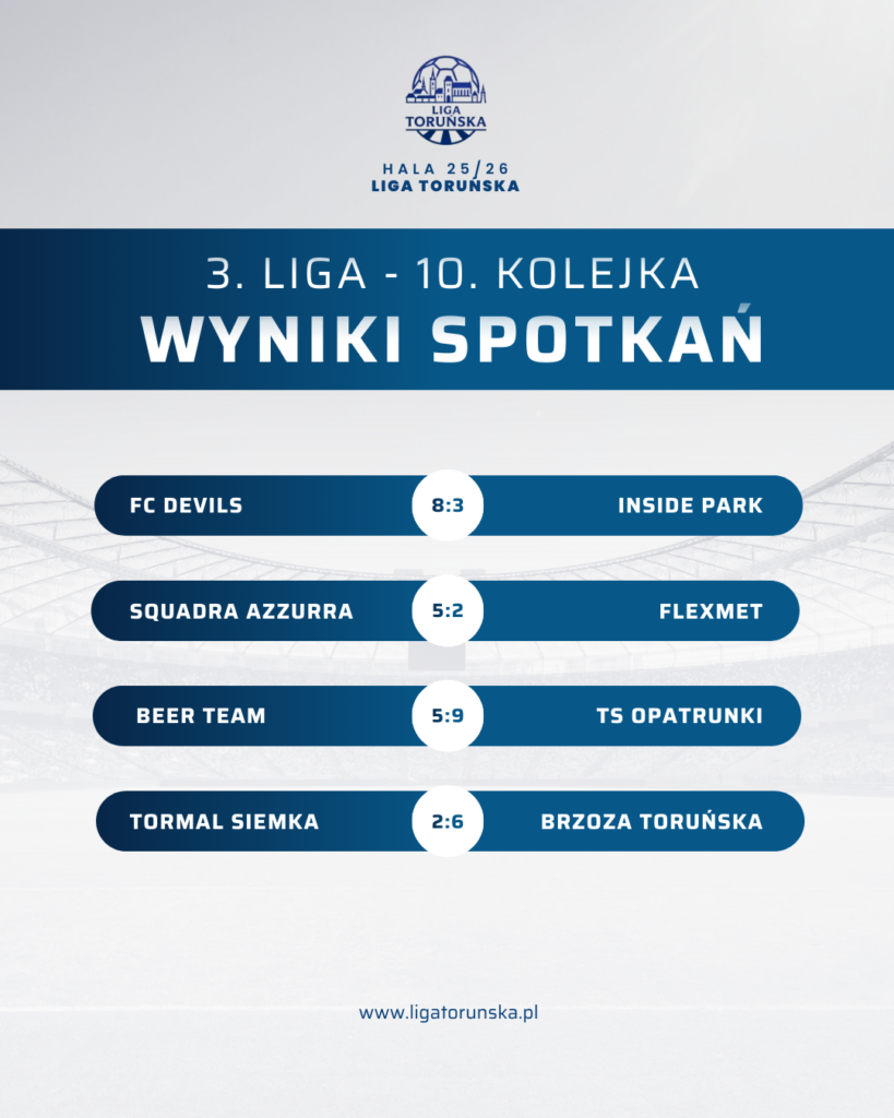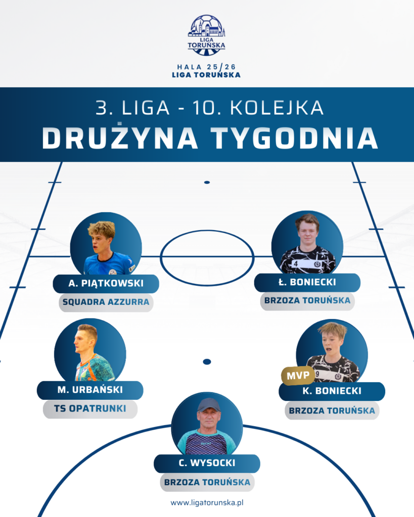 Najważniejsze wydarzenie kolejki miało miejsce w starciu Tormalu z Brzozą Toruńską. Lider, który przez dziewięć kolejek pozostawał niepokonany, musiał uznać wyższość rywala. Brzoza zagrała fantastyczne zawody – zdyscyplinowana defensywa, agresja w odbiorze i ogromne zaangażowanie od pierwszej do ostatniej minuty. Czesław Wysocki w bramce wielokrotnie ratował zespół, a Kryspin Boniecki rozegrał fenomenalne spotkanie w defensywie, przerywając akcje Tormalu i zasłużenie zdobywając tytuł MVP. To zwycięstwo nie tylko daje Brzozie ogromny impuls, ale przede wszystkim sprawia, że walka o złoto wciąż pozostaje otwarta.