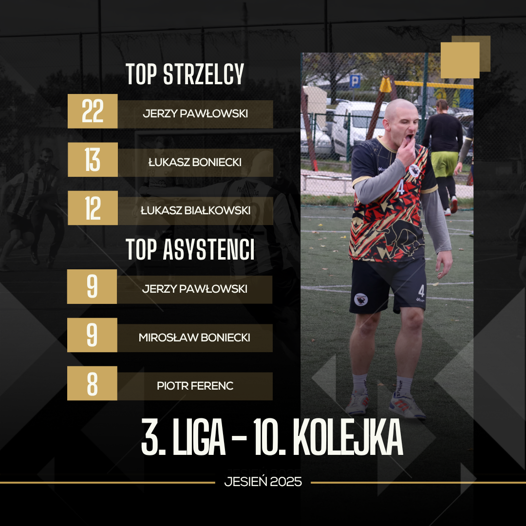 Pak Technik wykorzystał remis Goldenów i objął prowadzenie w tabeli 3. Ligi. Zespół Mateusza Rembezy po niezwykle zaciętym spotkaniu pokonał Koka Team 4:3. Mecz od samego początku stał na wysokim poziomie – obfitował w szybkie tempo, walkę o każdy centymetr boiska oraz emocje, których nie zabrakło aż do końcowego gwizdka. Koka prowadziła 2:1, ale Pak Technik zdołał odwrócić losy spotkania dzięki świetnej organizacji i konsekwencji w grze. Kluczową postacią okazał się bramkarz Paweł Szymański, który popisał się kilkoma kapitalnymi interwencjami i uchronił swoją drużynę przed stratą kolejnych bramek. Po tym zwycięstwie Pak Technik nie tylko wskoczył na pozycję lidera, ale też potwierdził, że jest jednym z głównych faworytów do tytułu.