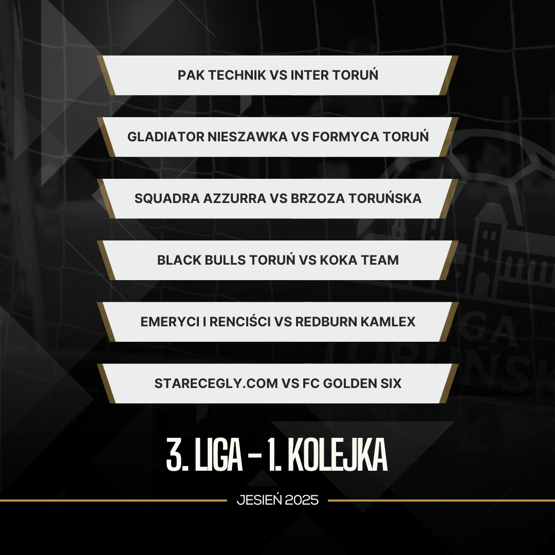 Wielu emocji kibicom powinno dostarczyć konfrontacja Black Bulls Toruń z Koka Team, która już teraz może być określana mianem jednej z najciekawszych potyczek inauguracyjnej kolejki 3. Ligi. Oba zespoły mają swoje charaktery i od pierwszych minut będą chciały zaprezentować się z jak najlepszej strony, co może przełożyć się na widowiskowe starcie pełne sytuacji bramkowych.