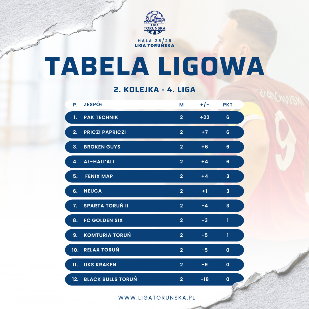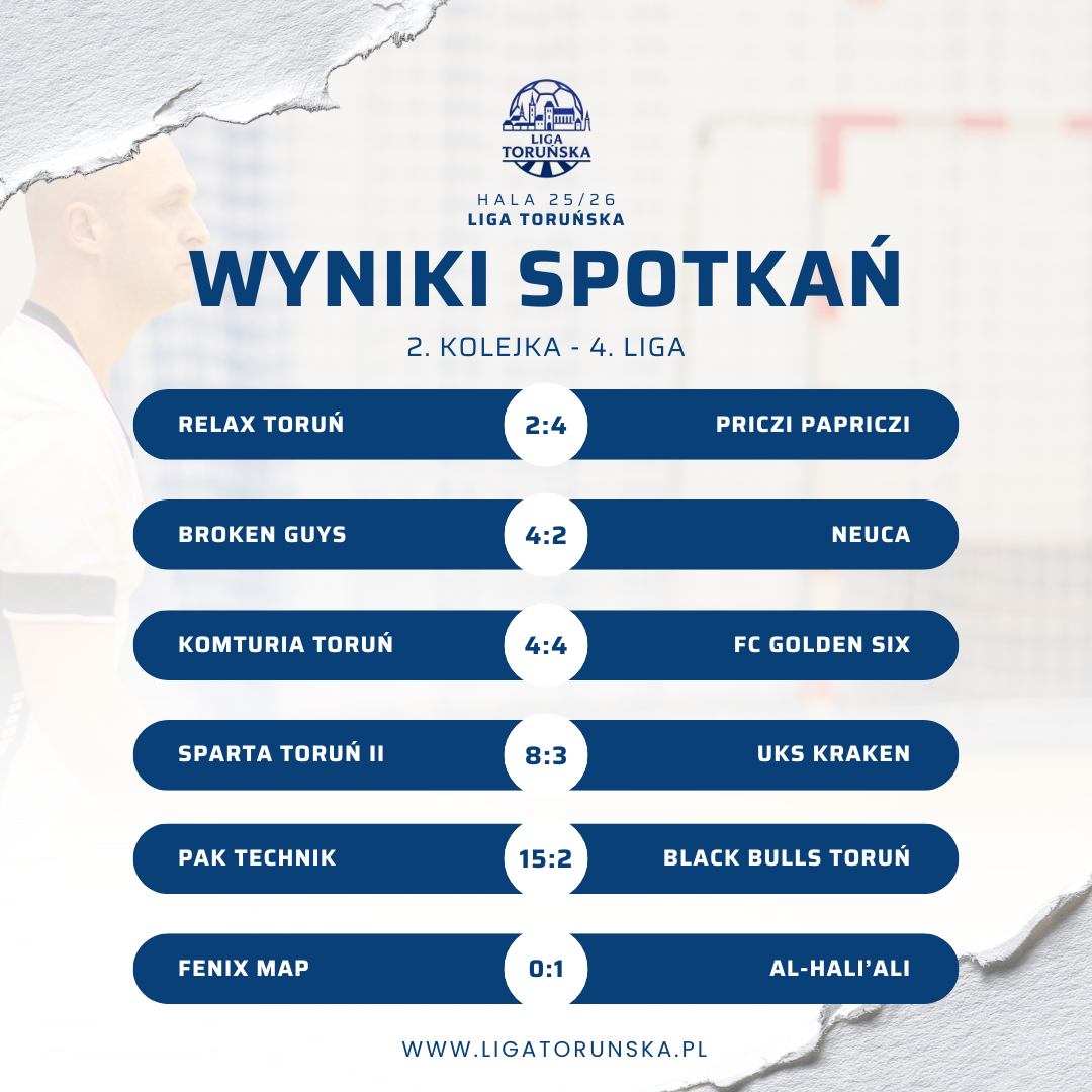 Druga kolejka halowej 4. ligi przyniosła zarówno ofensywne fajerwerki, jak i spotkanie, które zaskoczyło wszystkich minimalizmem. Były wysokie zwycięstwa faworytów, emocjonujące powroty w końcówkach oraz pierwsze przełamania drużyn dotąd czekających na komplet punktów.