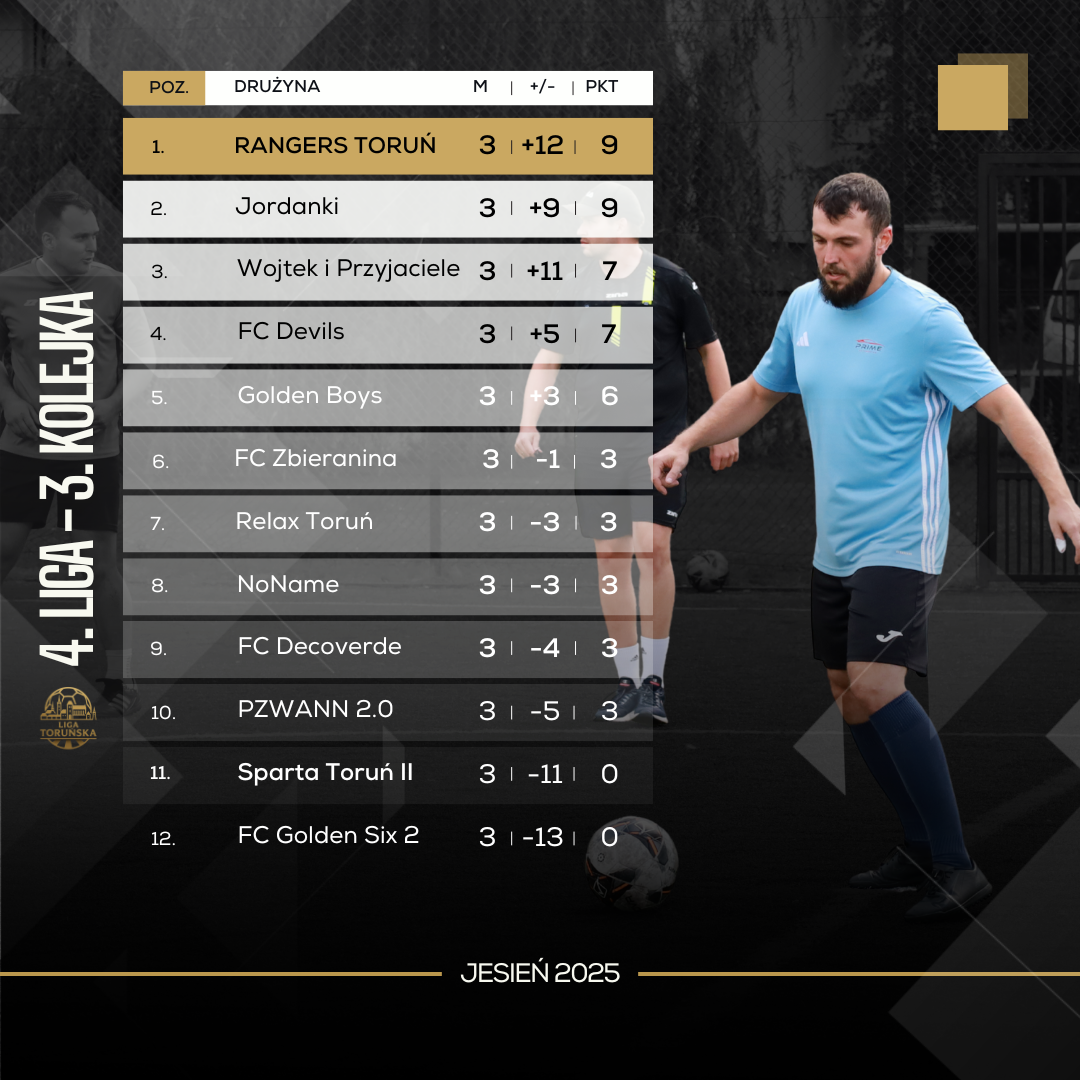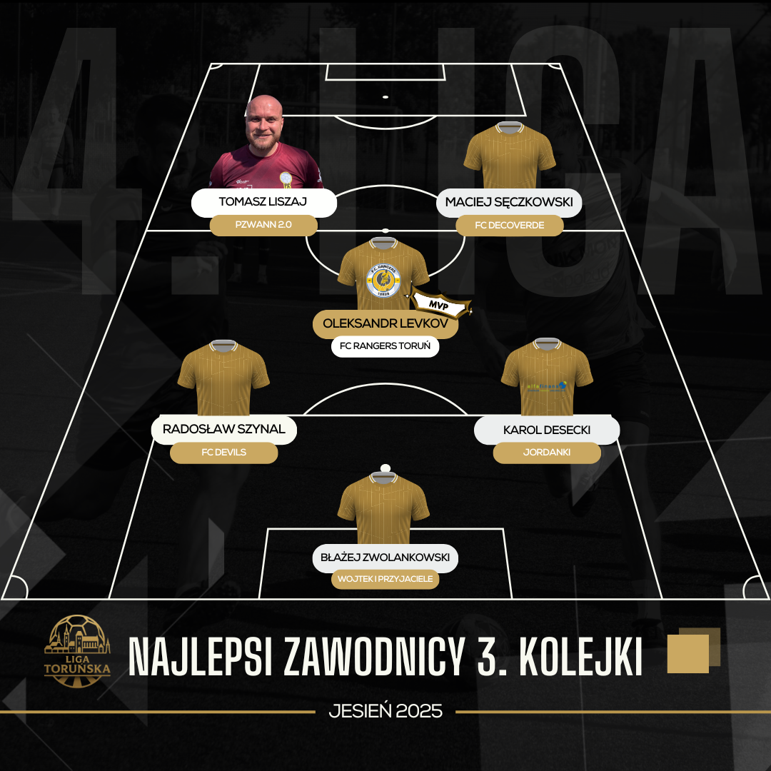 Sensacyjny lider tabeli się nie zatrzymuje. FC Rangers Toruń sięgnęli po kolejne trzy oczka, tym razem ogrywając FC Zbieraninę. Mecz ten był prawdziwym koncertem jednego zawodnika – Oleksandr Levkov strzelił cztery gole, dorzucił do tego asystę. Oznacza to, że wziął “kanadyjski” udział we wszystkich bramkach swojej ekipy. Robi to wrażenie, dlatego też w jego miejsce wpadł tytuł najlepszego gracza 3. kolejki w 4. Lidze. FC Zbieranina, choć kadrowo wyglądała nieźle, to jednak nie była w stanie powstrzymać lidera rywali.