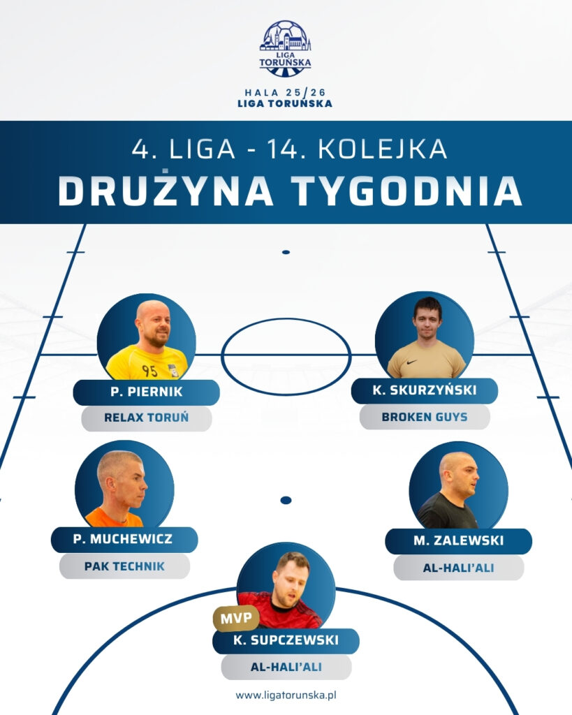 W pierwszym meczu grupy spadkowej UKS Kraken podejmował NEUCE. Spotkanie było dynamiczne, ostatecznie zespoły podzieliły się punktami, kończąc sezon remisem 5:5. Bardzo mocny akcent na zakończenie rozgrywek postawił Relax Toruń, który pokonał Komturię Toruń 10:3. Relax od początku narzucił wysokie tempo i szybko zbudował przewagę. Bohaterem spotkania został Paweł Piernik, który zdobył pięć bramek i zanotował jedną asystę, zgarniając tytuł MVP meczu. W grupie mistrzowskiej Broken Guys pokonali Fenix Map 7:3. Już przed tym spotkaniem Fenix miał zapewnione brązowe medale, natomiast drużyna Mateusza Pacanowskiego kończy sezon zwycięstwem.