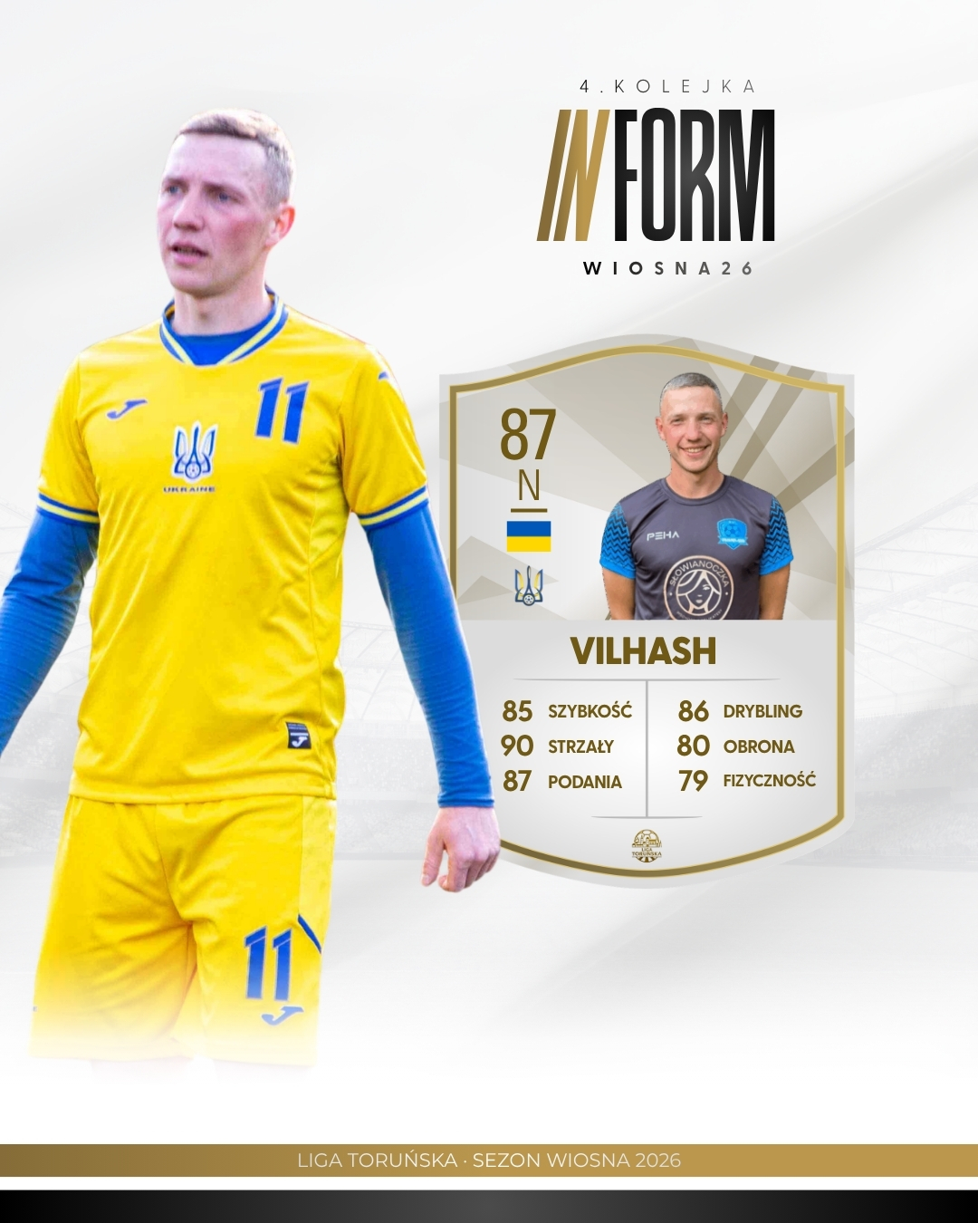 Niekwestionowanym królem polowania w Autoshield 1. Lidze został Oleh Vilhash. W starciu o ogromnym ciężarze gatunkowym pomiędzy Team UA II a Spartą, Oleh zaprezentował prawdziwy pokaz „totalnego futbolu”. Był dosłownie wszędzie – od przerywania akcji rywali, po ich bezwzględne wykańczanie. Bilans dwóch bramek i dwóch asyst w tak prestiżowym pojedynku to wynik, który definiuje lidera. Dzięki jego postawie Team UA II nie tylko podtrzymuje status drużyny niepokonanej, ale wykonuje milowy krok w stronę wymarzonego awansu na Mistrzostwa Polski. Vilhash udowodnił, że w meczach „o sześć punktów” to on jest tym czynnikiem, który przesuwa szalę zwycięstwa na stronę ukraińskiej ekipy.